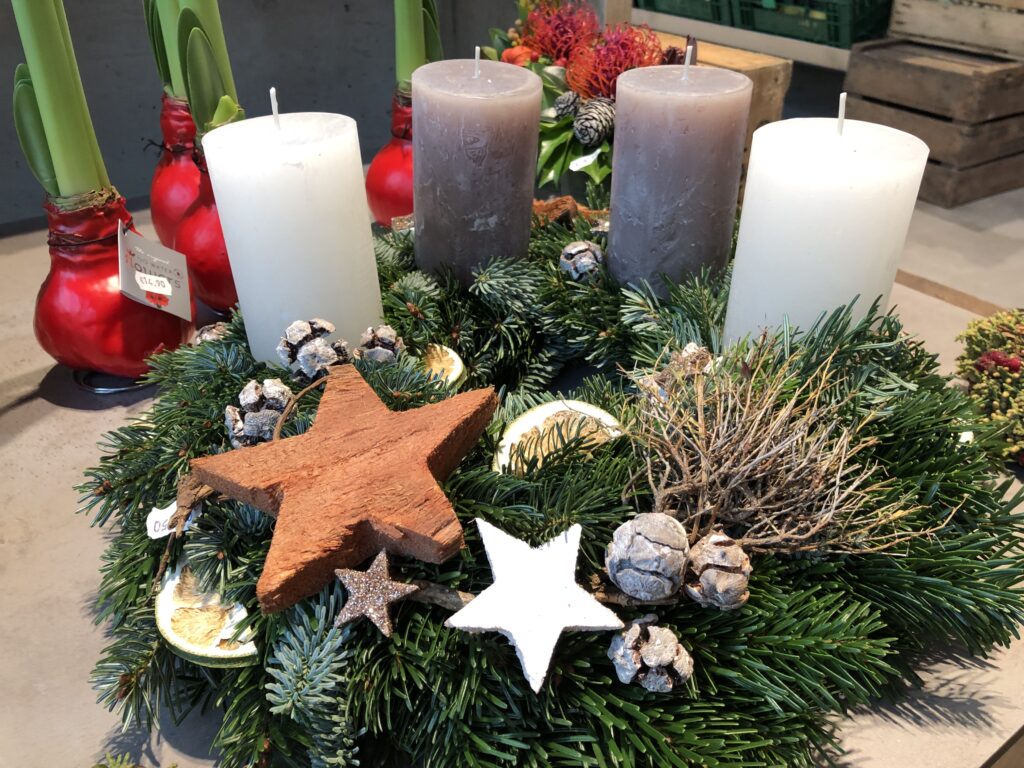 Advents- & Weihnachtsgestecke, Blumensträuße aus unserer Hof-Floristik, sowie weihnachtliche Dekoration und viele Leckereien. Vorbeischauen lohnt sich! ♣